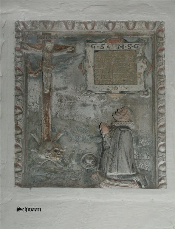 Innerhalb dieses Rahmens ist vermerkt, dass ein gewisser Simon Hase der Kirche 1598 einen Predigtstuhl, also eine Kanzel gestiftet hat. Aus seiner vor dem Kreuz knienden Haltung kann man schließen, dass diese Stiftung wahrscheinlich ein Bußakt gewesen ist. Ursprünglich war die Kanzel also an der Südseite angebracht und nicht wie heute an der Nordseite.