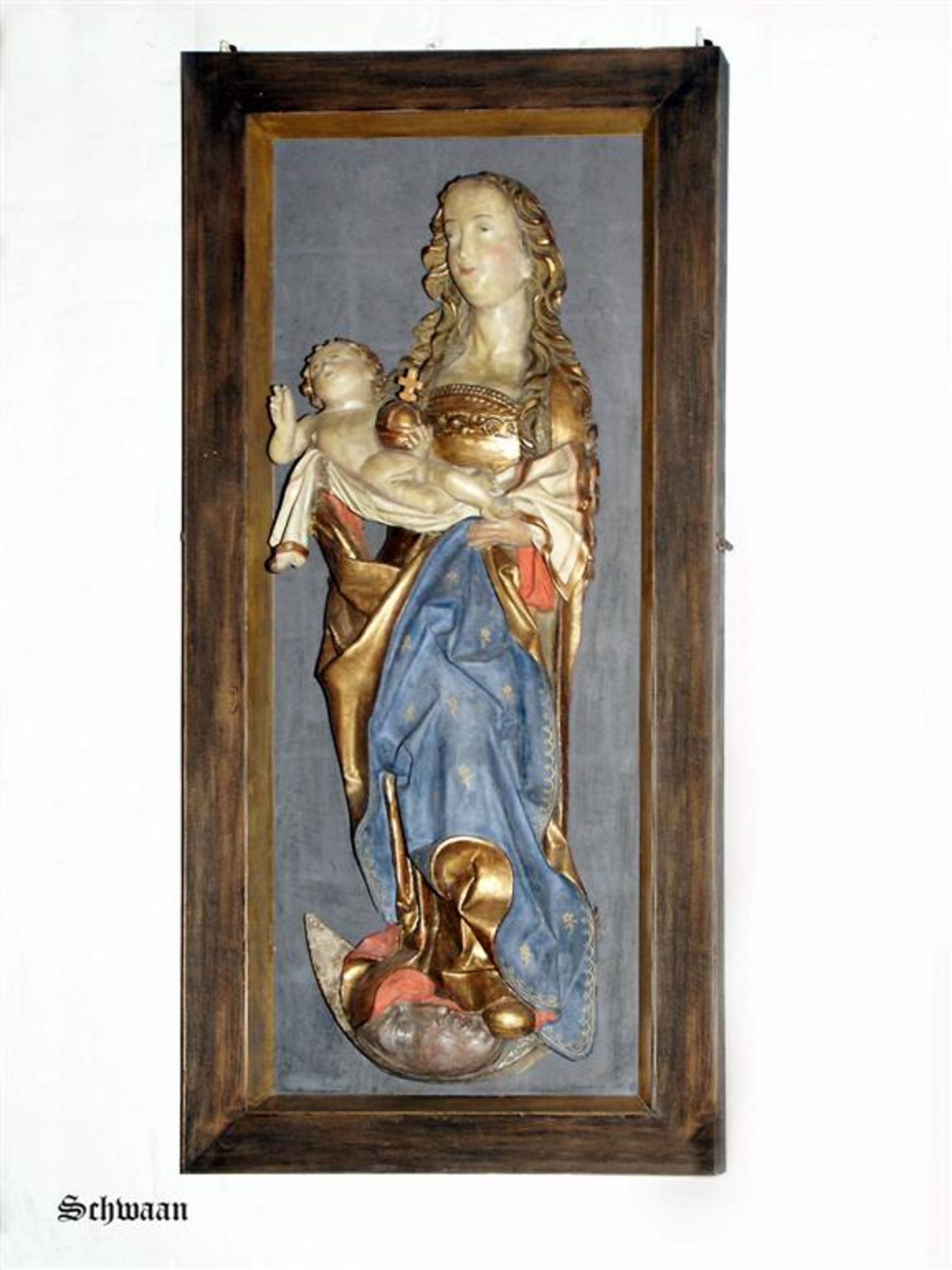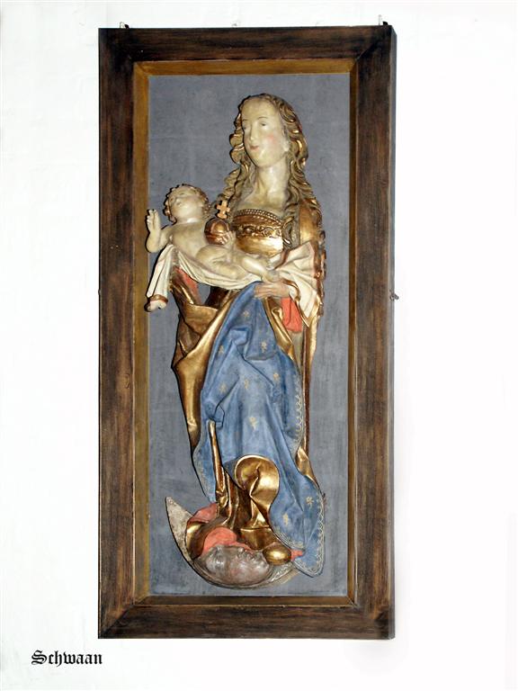 Wiendorfer Madonna: Die Mariendarstellung aus dem Jahr 1500 wurde 1945 auf dem Dachboden der Kirche Wiendorf gefunden, und trägt darum den Namen Wiendorfer Madonna. Die Madonna stammt aus der Werkstatt des Rostocker Künstlers Henning Roleves. Diese Art Maria mit dem Jesuskind darzustellen, nennt man Mondsichelmadonna oder auch Apokalyptische Madonna. Sie ist im letzten Buch der Bibel, im Buch der Offenbarung, beschrieben: