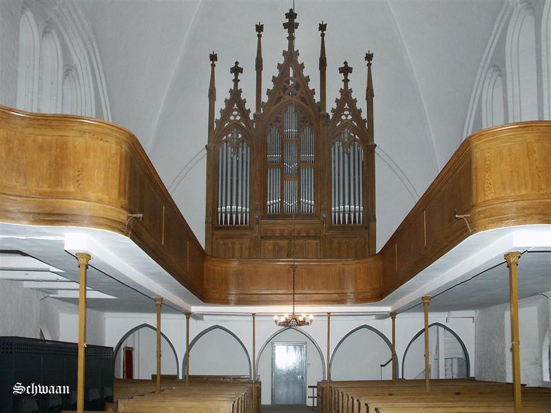 Orgel: Zu den wertvollsten Stücken in der Schwaaner Kirche gehört die historische Orgel. Die Königin der Instrumente ist eine der großen Orgeln, die von dem Wismarer Orgelbauer Friedrich Wilhelm Winzer gebaut wurde. Sie entstand 1860. Bis auf den elektrischen Motor ist die Orgel noch im Originalzustand erhalten. Von der Vorgängerorgel ist nur noch eine Zeichnung der Vorderseite (des Orgelprospektes) erhalten. Sie muss in der Zeit Ende des 16. und Anfang des 17. Jahrhunderts gebaut worden sein.