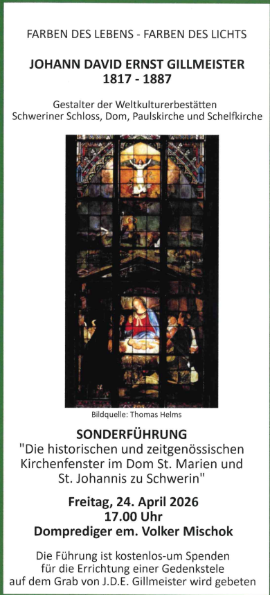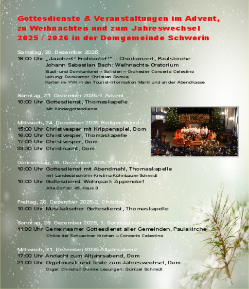 Herzlich Willkommen auf unseren Internetseiten mit vielfältigen Informationen rund um unsere Kirchengemeinde und unseren Dom. Die Domgemeinde Schwerin umfasst flächenmäßig Teile der Schweriner Altstadt sowie die Stadtteile Krebsförden, Görries, Zippendorf und Mueß mit ca. 2000 Gemeindemitgliedern.