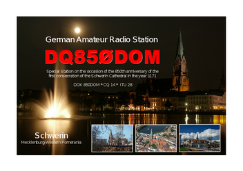 Vom 1. September bis 30. November 2021 waren Funkamateure des Schweriner Ortsverbandes (externer Link) des Deutschen Amateur-Radio-Club e.V. (DARC) mit dem durch die deutsche Bundesnetzagentur zugewiesenen Funkrufzeichen DQ850DOM in der Luft und kündeten weltweit vom Domjubiläum. Nach Abschluss der Aktivität stehen 8.544 Funkverbindungen im Log. Diese wurden getätigt mit Funkamateuren in vielen Ländern weltweit - in Morsetelegraphie, Digitalfunk, Sprechfunk, Funkfernschreiben, über Satelliten und sogar über den Mond! In einigen Funkverbindungen mit amerikanischen Funkamateuren gaben diese an, dass ihre Vorfahren direkt aus Schwerin oder aus unserem Bundesland stammen und freuten sich, durch das Domjubiläum wieder an die Herkunft ihrer Familien erinnert zu werden. Andere gaben an, dass sie die Aktivität inspiriert hat, Schwerin und den Dom für ihren Urlaub einzuplanen. Die Schweriner Funkamateure tätigten die Verbindungen hauptsächlich von ihren eigenen Standorten aus oder von der Schweriner Klubstation in Görries - am 24. September waren sie direkt aus dem Dom "in der Luft". Eine gelungene Aktion!