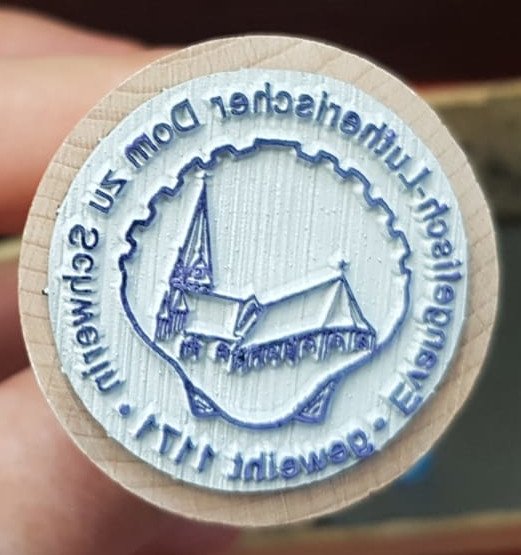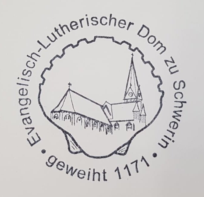 Im Schweriner Dom können Pilgerinnen und Pilger seit Mitte Juni 2023 nun auch einen Pilgerstempel und auf Wunsch einen Pilgersegen für ihren Weg erhalten. Den Stempel gestaltete unser Domgemeindemitglied, die Künstlerin Cathrin Resch. Er ist am Eingang des Doms bei der Domaufsicht erhältlich.