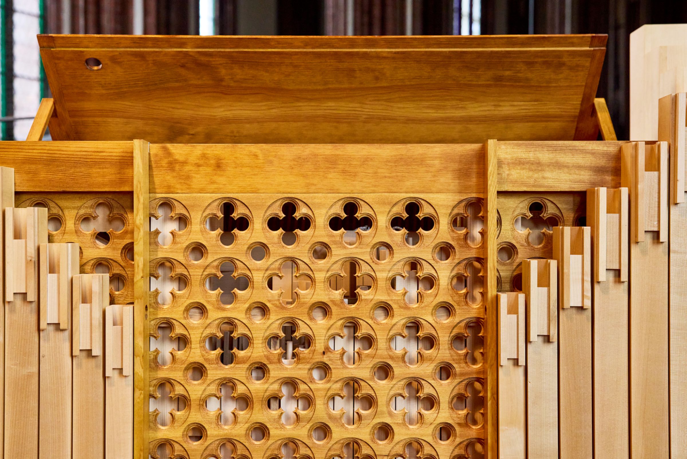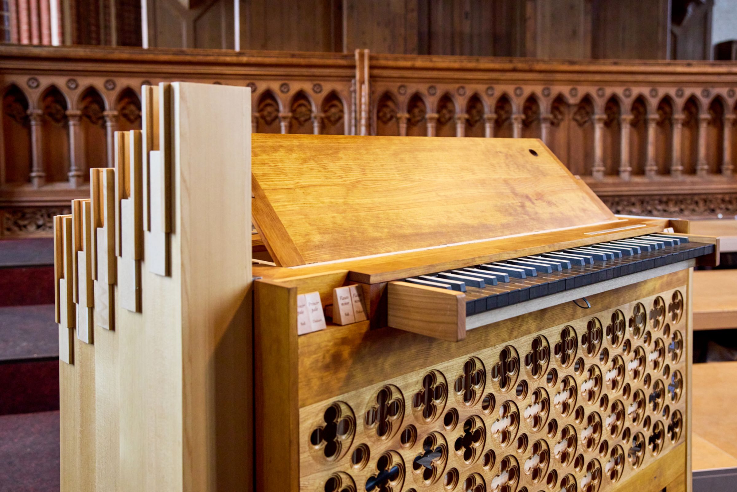 Drei Register, die über geteilte Schleifen auch solistisch spielbar sind, verleihen der kleinen Orgel im Raum einen prägnanten und zugleich verspielten Klang. Nach einem ereignisreichen Spendenmarathon wurde die Truhenorgel im Oktober 2019 im Rahmen eines feierlichen Gottesdienstes geweiht und ihrer Bestimmung übergeben.