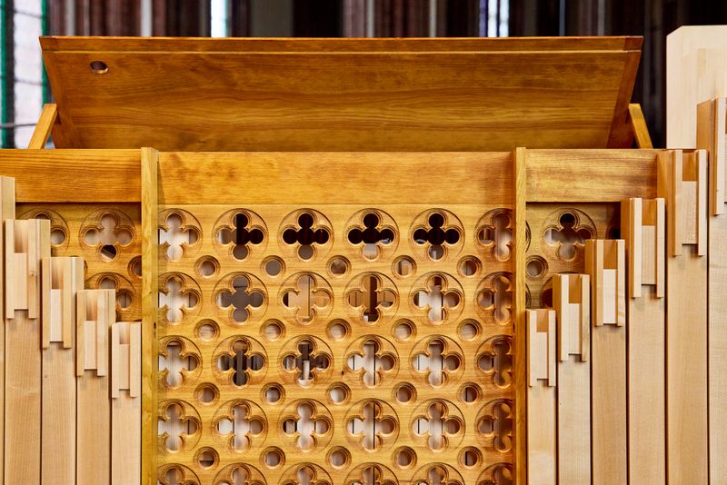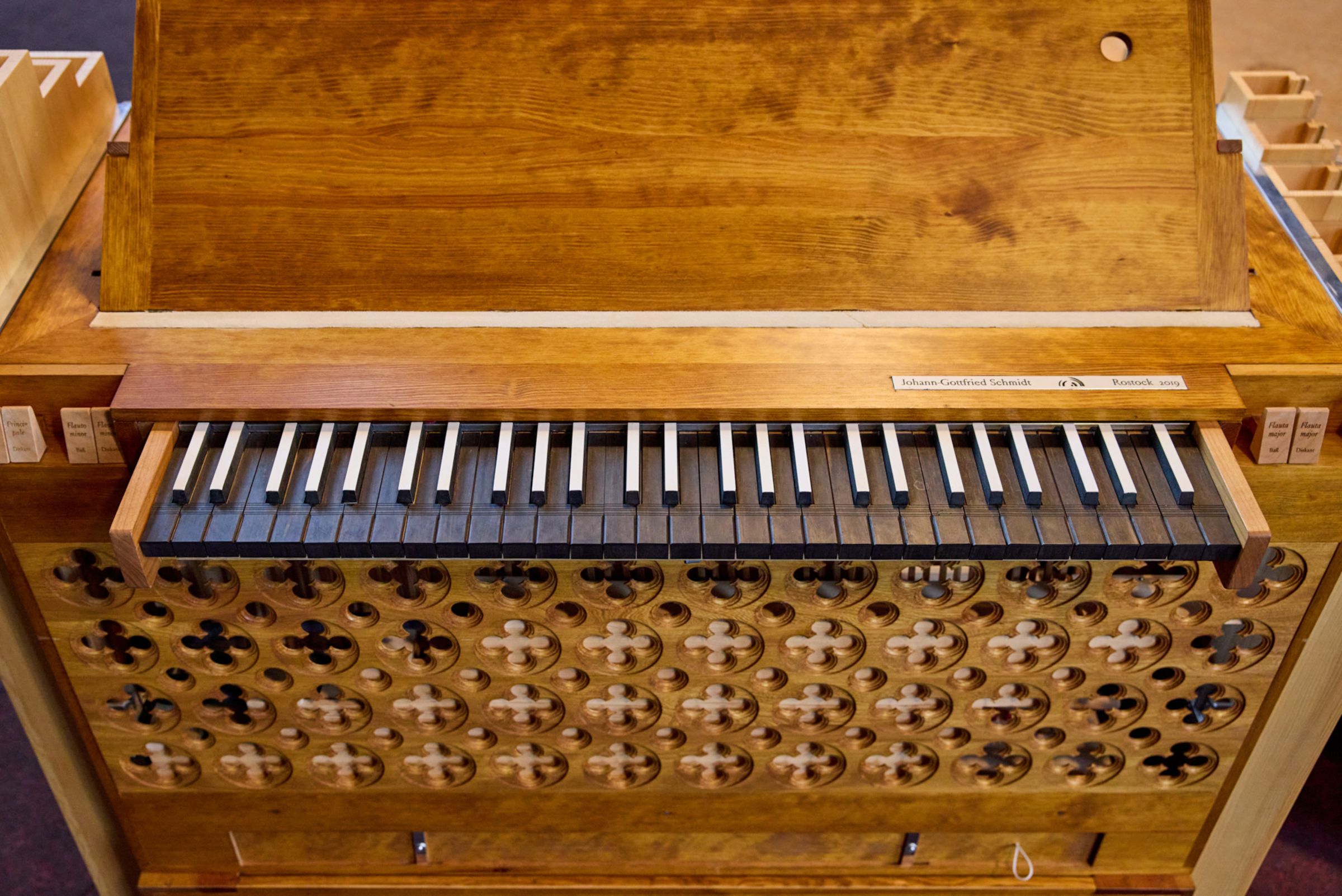 Ob Bach-Kantate, Mozart-Requiem oder Andacht im Hochchor: zu vielen Gelegenheiten benötigt man ein adäquates Instrument neben der großen Orgel. So steht mit der Truhenorgel eine Schöpfung aus der Werkstatt für historische Tasteninstrumente Johann Gottfried Schmidt aus Rostock zur Verfügung, die sich bewusst am Klangideal des 18. Jahrhunderts orientiert.