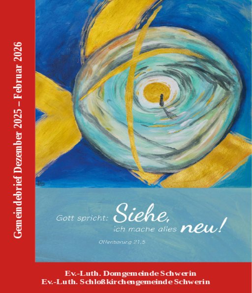 Ab der Ausgabe Juni-Juli 2025 finden Sie alle Informationen der Domgemeinde Schwerin und der Schloßkirchengemeinde Schwerin in einem gemeinsamen Gemeindebrief. Mit Klick auf das Bild können Sie diesen lesen oder downloaden. Rückmeldungen oder Anfragen zum Gemeindebrief senden Sie bitte per eMail.