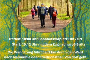 Start um 10:12 Uhr mit dem Zug nach Groß Brütz. Die Wanderung führt dann ca. 7 km durch den Wald nach Neumühle oder