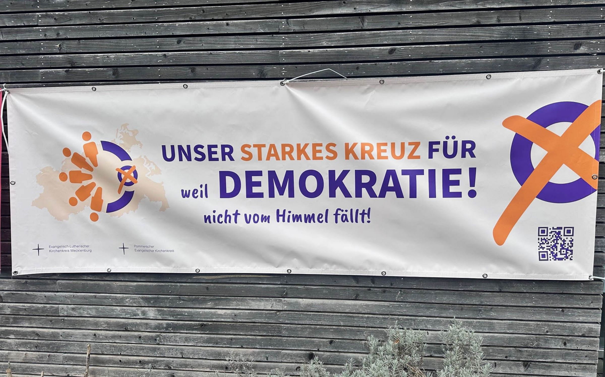 Deshalb engagieren wir uns als Kirchenkreise Mecklenburg und Pommern in der Nordkirche im Vorfeld der Landtagswahlen, die am 20. September 2026 stattfinden, mit der Kampagne: „Unser starkes Kreuz für Demokratie – Ich bin dabei!/…weil Demokratie nicht vom Himmel fällt!“ Wir rufen insbesondere Christinnen und Christen damit auf, wählen zu gehen.