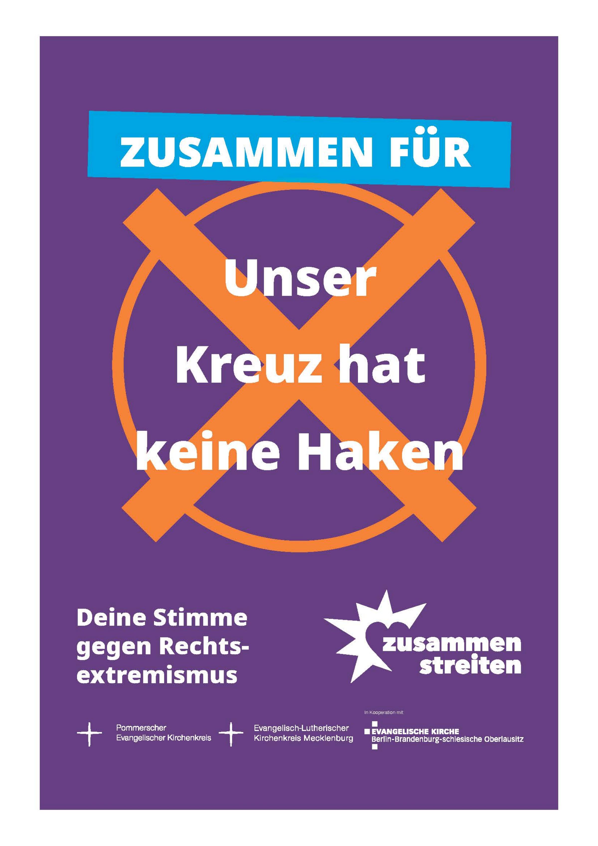 Das Hauptmotiv nutzen wir mit freundlicher Genehmigung der bayerischen Landeskirche und haben es für MV grafisch angepasst. Es beinhaltet den Claim: „Unser starkes Kreuz für Demokratie – Ich bin dabei!“