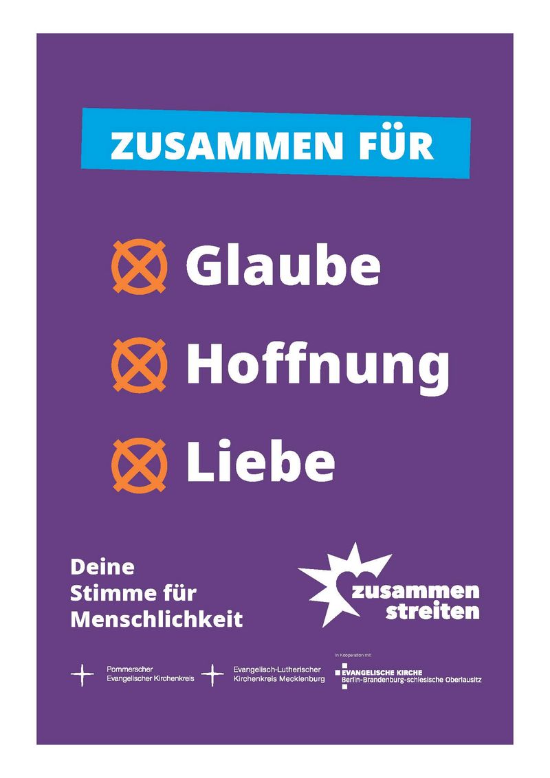 Das Motiv hatten wir bereits zur Europawahl mit freundlicher Genehmigung der EKBO übernommen und angepasst.