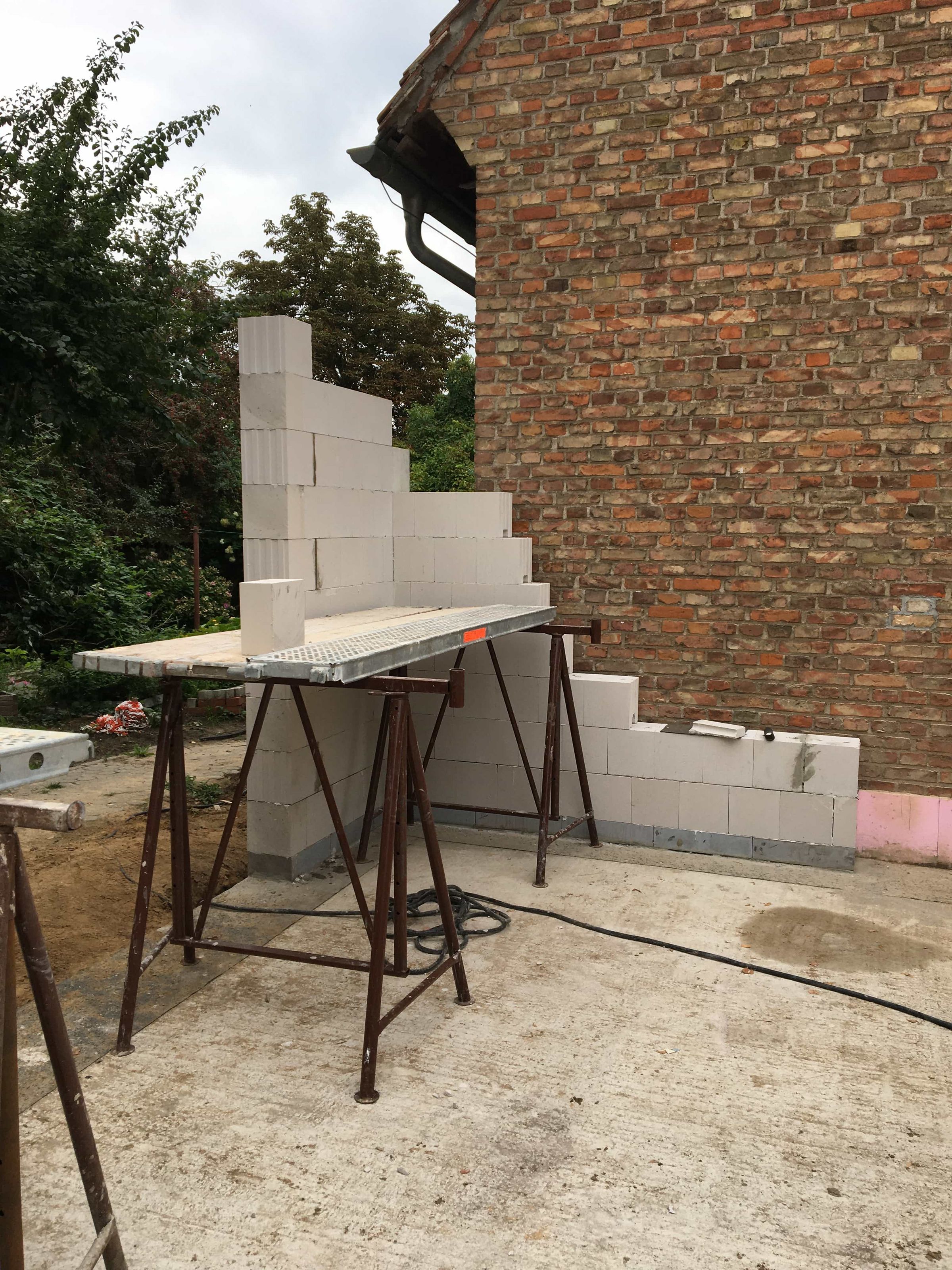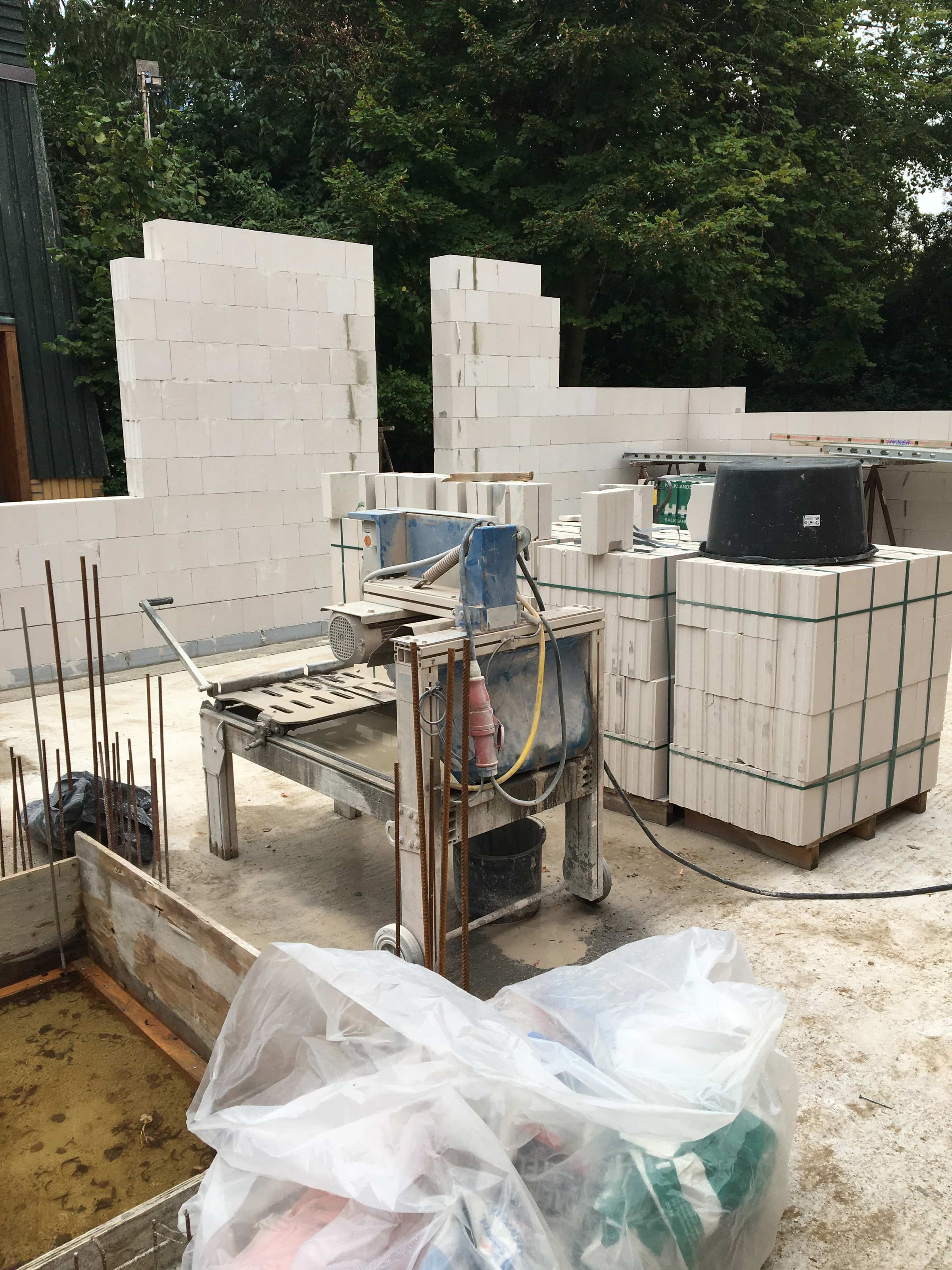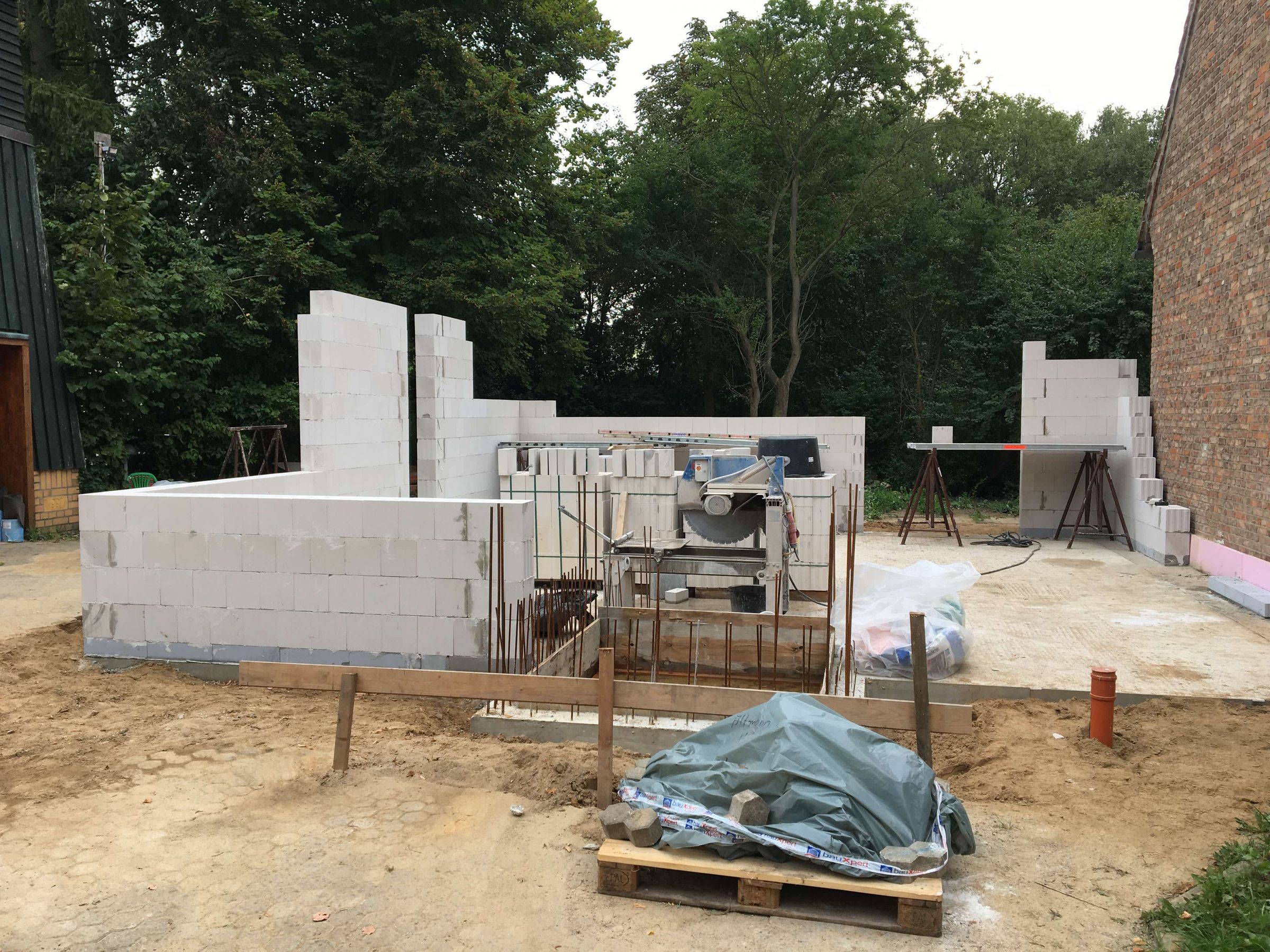 Nun geht es endlich weiter. Die ersten Ladungen mit Steinen sind gekommen und die Maurer haben die ersten Wände hochgezogen.