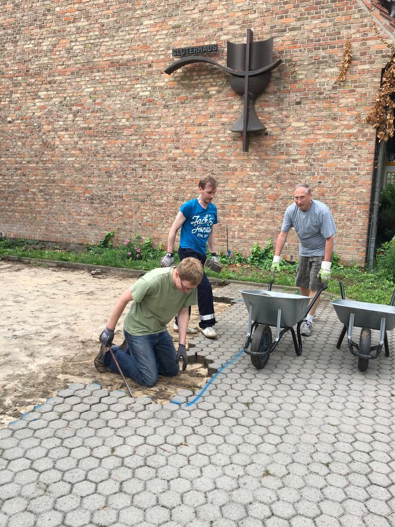 In den letzten Wochen wurden einige Vorarbeiten in Eigenleistung erledigt, um so die Baukosten zu verringern. Dank fleißiger Helfer konnten wir bei unserem Arbeitseinsatz noch die restlichen Steine vom Parkplatz aufnehmen, die Steine für die Wiederverwendung stapeln und Lagerplätze für das Baumaterial vorbereiten.