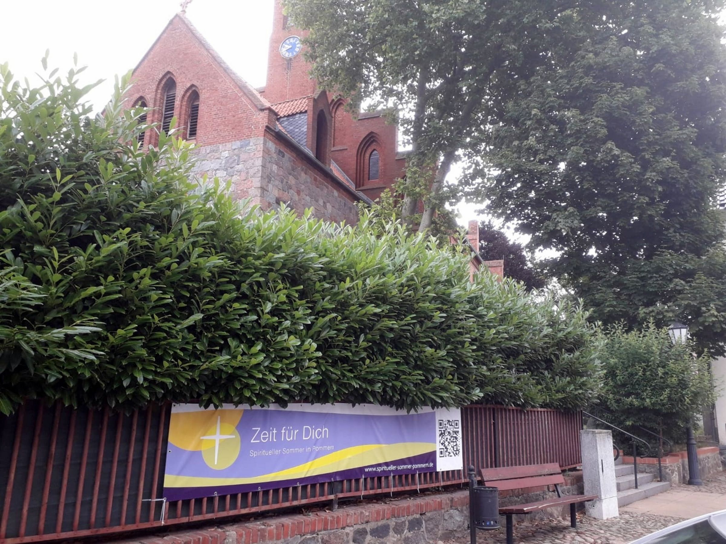 Mehrere Stationen des „Spirituellen Sommers“ haben bereits von dieser Unterstützungsmöglichkeit Gebrauch gemacht und weisen gut sichtbar mit dem Banner auf ihre eigenen Vorhaben sowie auf die gesamte Veranstaltungsreihe mit Angeboten zur inneren Einkehr in ganz Mecklenburg und Pommern hin.