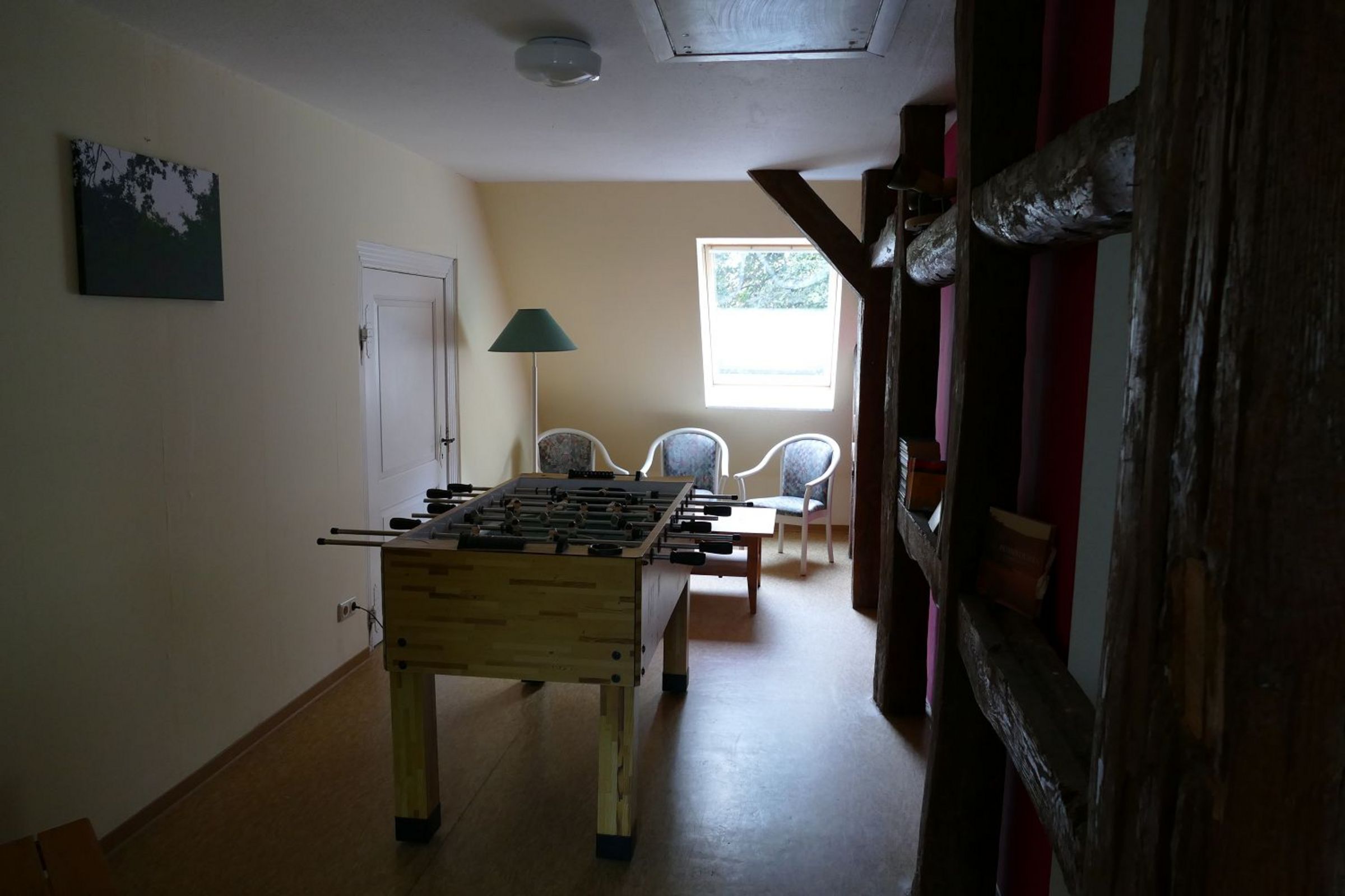 Unsere Ferienwohnung bietet Platz für 8 Personen. 4 Schlafräume mit je 2 Betten stehen Ihnen zur Verfügung, 2 Duschbäder, ein großer Aufenthaltsraum, eine Küchenzeile und nicht zu vergessen: der Tischkicker im Flur, der darauf wartet, einen Meister zu küren. 150 qm ist die Wohnung groß und vor allem eines: hell und freundlich. Morgens weckt Sie ein stolzer Hahn, tagsüber begleitet Sie das Zwitschern der Vögel.
