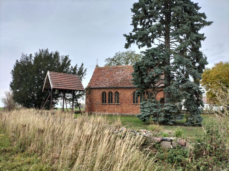 Baurat Buttel ließ 1842 die Kirche in Quastenberg als putzfreien roten Backsteinbau mit Stilmitteln, welche aus dem Mittelalter entwickelt wurden, erbauen.
