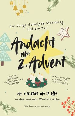 VeranstaltungAndacht Junge Gemeinde Sternberg 07.12.2025 · 16:00 Uhr · 17:00 Uhr St. Maria und St. Nikolaus KircheMühlenstraße 19406 Sternberg Leitung Junge Gemeinde Im Kalender speichern (.ics) Route berechnen zurück zur Übersicht der Veranstaltungen StartseiteGottesdienste und VeranstaltungenGruppen und KreiseUnsere KirchenStadtkirche SternbergDorfkirche SültenKirche im LebenFriedhöfeGremien und GemeindestrukturKontakt und MitarbeitendeMitmachen und SpendenAnmelden