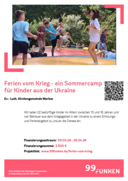 Das Projekt wird gemeinsam mit der Stadt Marlow und in enger Zusammenarbeit mit der Stadtverwaltung der ukrainischen Stadt Jampil geplant und durchgeführt. In Marlow leben ca. 20 Familien aus der Ukraine, die das Feriencamp in Organisation und Durchführung unterstützen werden. Eine ukrainische Einwohnerin aus Marlow wird die sprachliche Koordination übernehmen und kennt die Stadt Jampil aus ihrer eigenen Vergangenheit. Während des Ferienaufenthaltes werden kindgerechte Freizeitveranstaltungen durchgeführt, zahlreiche Marlower Vereine sind hierbei eingebunden. Gemeinsame Aktionen mit Kindern und Jugendlichen aus Marlow sind vorgesehen.