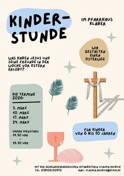 VeranstaltungKinderstunde 03.03.2026 · 14:30 Uhr · 15:30 Uhr Pfarrhaus KlaberKlaber 2518279 Lalendorf Leitung C. Milbich Im Kalender speichern (.ics) Route berechnen zurück zur Übersicht der Veranstaltungen StartseiteTets Tscknjlnjkdcdwdsdssdf sdfdsf sdfdsfdddfgdfgtester2TesterGottesdienste und VeranstaltungenNeue SeiteNeue Seite TestTabellentestAkkordionAnmelden