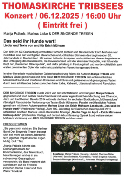 Der 1934 im Konzentrationslager Oranienburg ermordete Humorist und Revolutionär Erich Mühsam begleitete mit seinen brillianten Analysen und spöttischen Versen den Untergang des Kaiserreichs, die Revolutionszeit, und die Weimarer Republik. Eine literarisch-musikalische Geisterbeschwörung.