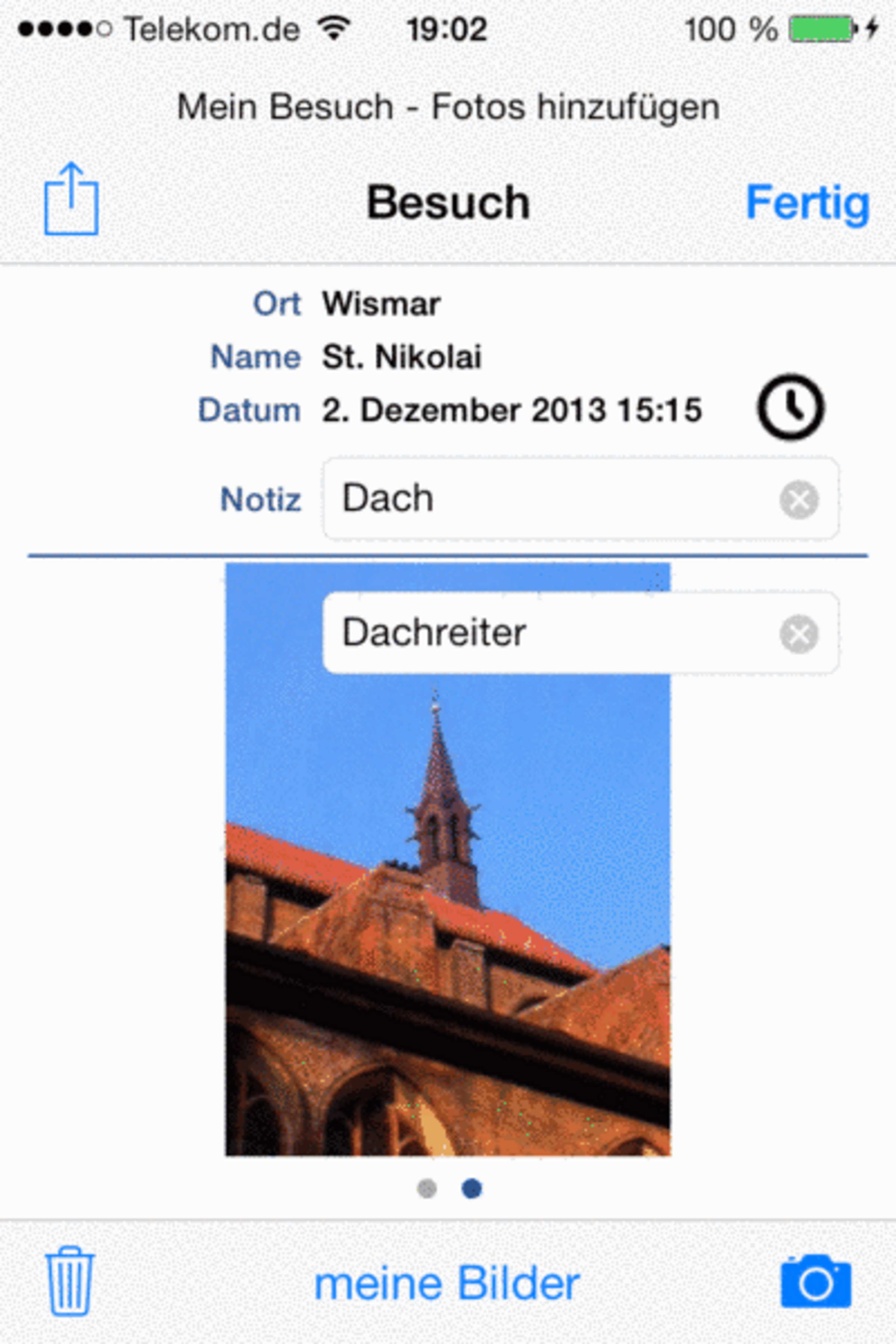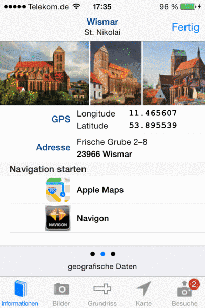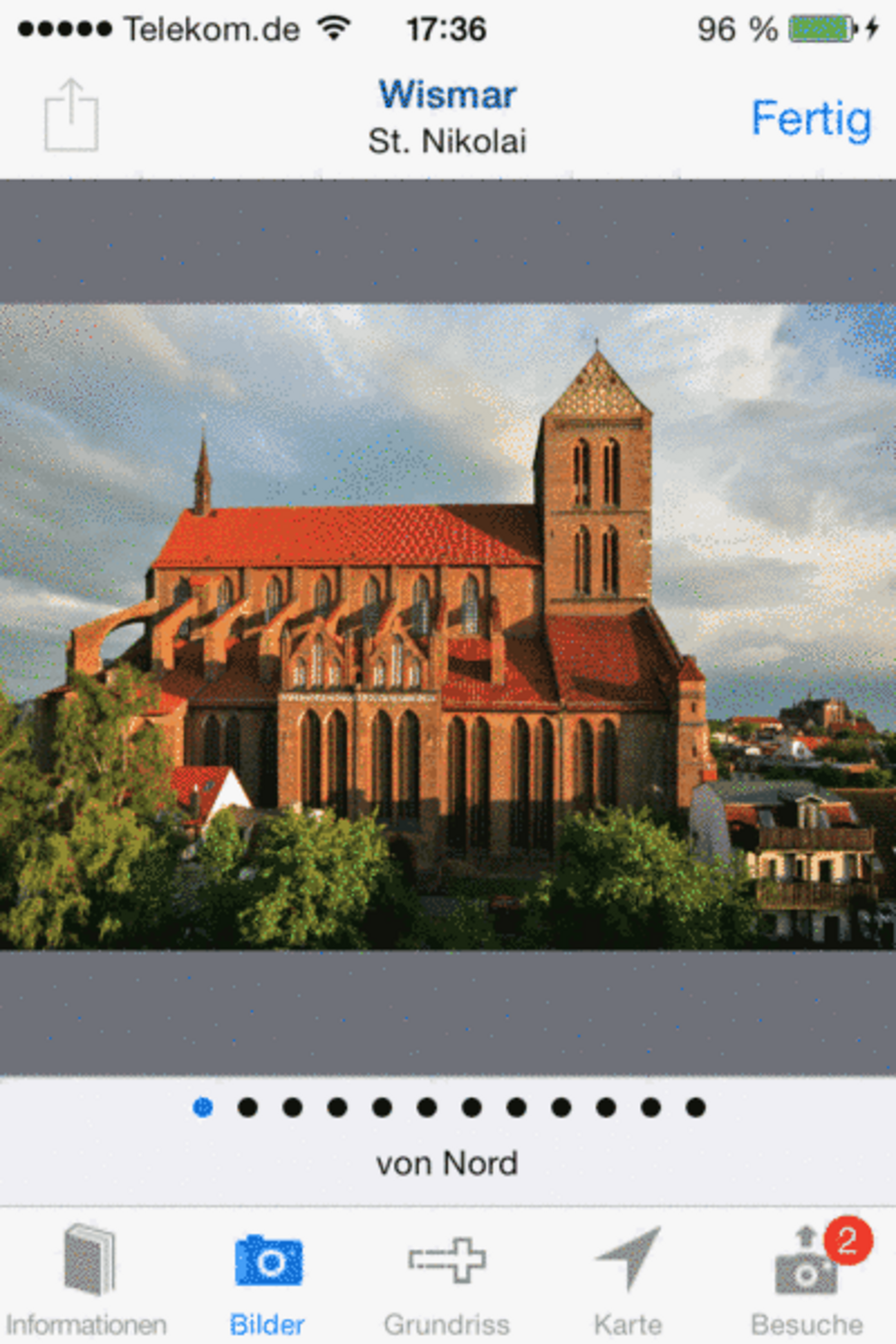 In der Bilderdarstellung navigiert der Anwender mit den für das iPhone typischen Gesten - Schieben, Vergrößern und Wechseln. Bilder, die bei eigenen Besuchen fotografiert worden sind, sind ebenfalls in der Darstellung vorhanden.