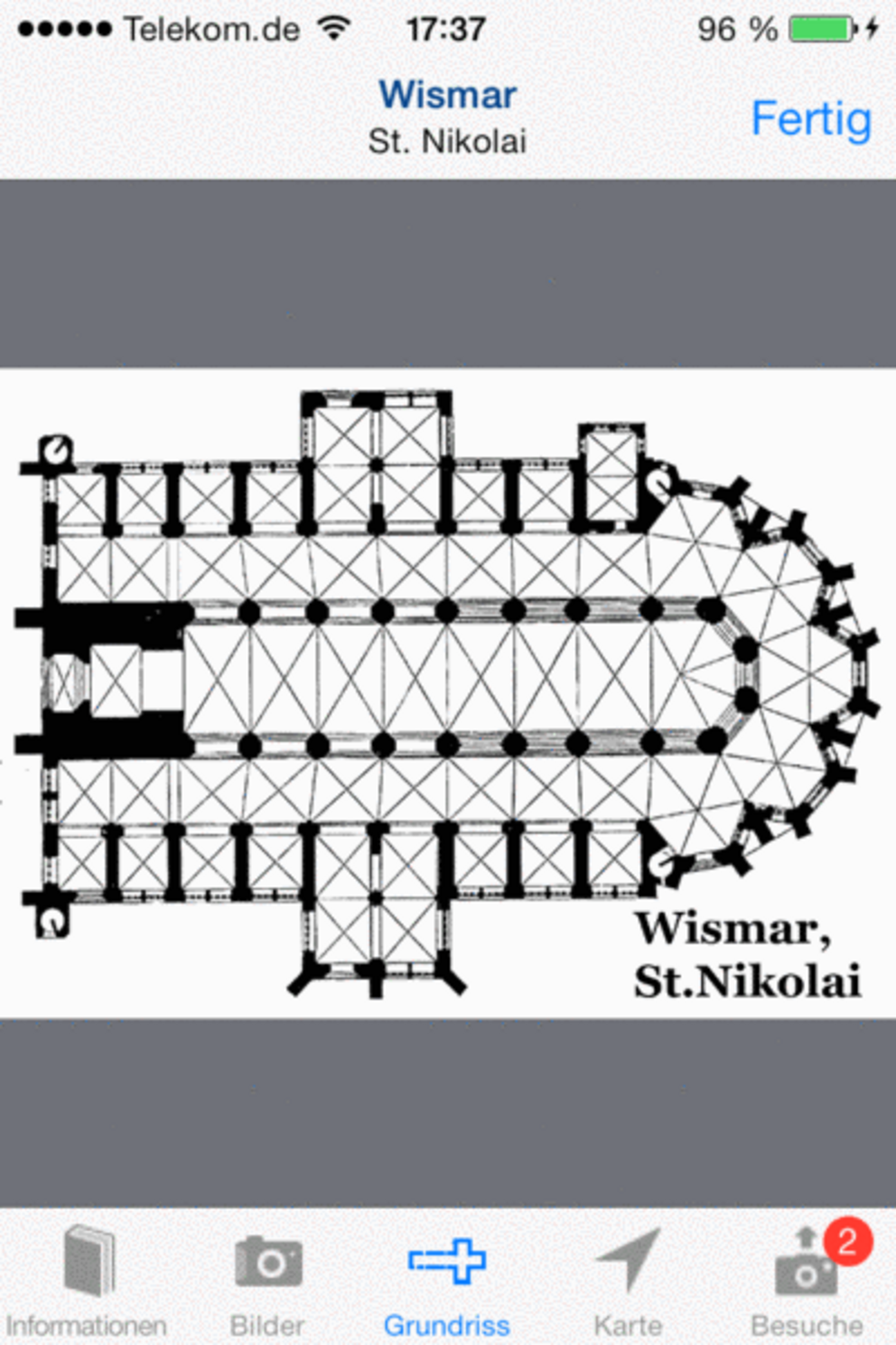 Grundrisse sind zu einem Großteil der Bauwerke vorhanden. Mit den iPhone typischen Gesten kann die Ansicht vergrößert und verschoben werden.