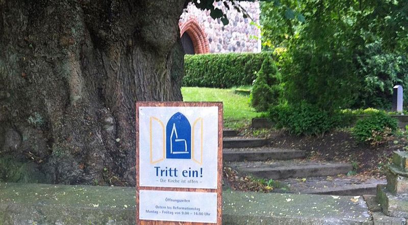 Bereits vor einigen Jahren haben wir unsere Aktion „Tritt ein! - Die Kirche ist offen“ gestartet. An vielen geöffneten Kirchen hängt schon das Schild mit dem Signet und den genauen Öffnungszeiten. Sie finden hier in der Datenbank einen Überblick der Kirchen in Mecklenburg-Vorpommern, die wir bisher erfasst haben.