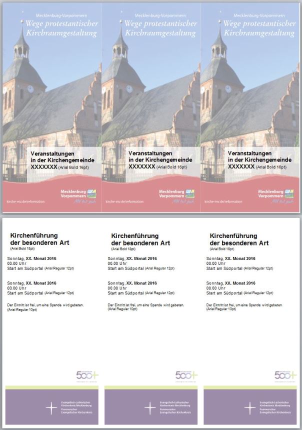 Nach dem Herunterladen können Sie die Dateien bearbeiten, d.h. entsprechende Texte einfügen und auch ein Foto ihrer Kirche einladen. Sie könnten dies dann selbst ausdrucken oder nach dem Abspeichern als PDF-Datei drucken oder kopieren lassen.