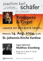 Das Konzert für Orgel und Trompete findet am Mittwoch, den 14. August um 19:00 Uhr in der Kartlower St. Johanniskirche statt. Tickets an der Abendkasse gibt es für 10 €.