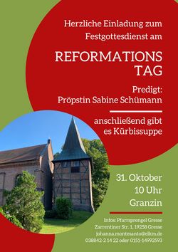 Der Gottesdienst beginnt um 10 Uhr in St. Martin zu Granzin. Im Anschluss gibt es die Möglichkeit, noch bei einer Kürbissuppe miteinander ins Gespräch zu kommen.