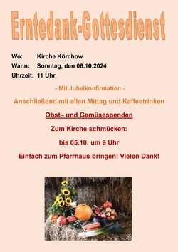 Erntedankgottesdienst und Konfirmationsjubiläum (11 Uhr)