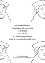 VeranstaltungAndacht zum Reformationstag 31.10.2024 · 17:00 Uhr · 18:00 Uhr GemeindezentrumStraße der Deutschen Einheit 17207 Röbel/Müritz Dateien ansehenherunterladen Im Kalender speichern (.ics) Route berechnen zurück zur Übersicht der Veranstaltungen
