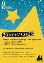 Euer Zuhause soll auch im neuen Jahr wieder gesegnet werden. So laden wir ein, am Samstag vor dem Dreikönigsfest um 16:00 Uhr zur Andacht in die Schmarsower Kirche mit anschließendem Punsch und heißer Suppe an der Feuerschale und euch wieder bei uns anzumelden, damit die Heiligen Drei Könige mit ihrem Segen auch zu euch nach Hause kommen.
