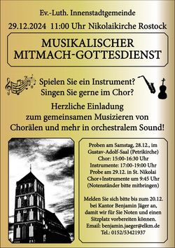 Musikalischer Mitmachgottesdienst in der Nikolaikirche (Proben und Anmeldung)