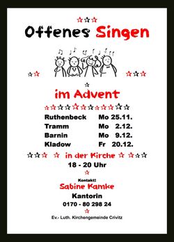 Offenes Singen im Advent in der Dorfkirche Tramm