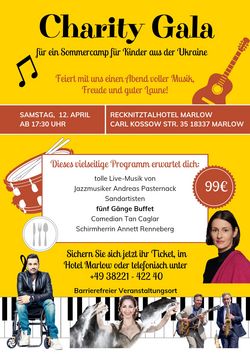 Die Gala soll helfen, die Kosten für ein dreiwöchiges Sommer Camp für 23 bedürftige Kinder aus der Ukraine mit zu finanzieren. Mit 99 Euro pro Karte unterstützt man das Projekt. Im Eintrittspreis inbegriffen sind ein Sektempfang, das 5 Gang Buffet mit begleitendenden Getränken und das Showprogramm.