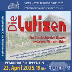 Im Rahmen der Veranstaltungsreihe 2025 lädt der Förderverein der Kuppentiner Kirche e.V. am Mittwoch, dem 23. April, um 19 Uhr in das ehemalige Kuppentiner Pfarrhaus ein. Zu Gast ist Museumsleiter Dr. Fred Ruchhöft mit seiner Goldberger Studie zur Mecklenburgischen Geschichte. Der besondere Fokus liegt auf den Lutizen und bringt interessante Einblicke in die Geschichte und Kultur und kann dazu beitragen, das historische Erbe der Region besser zu verstehen und die Bedeutung der Lutizen in der mecklenburgischen Geschichte hervorzuheben.