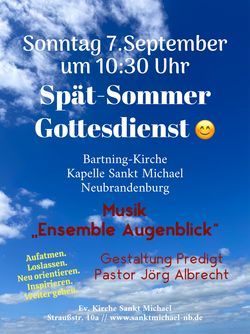 Aufatmen. SommerGottesdienst in unserer Kirche. Musik: Ensemble Augenblick