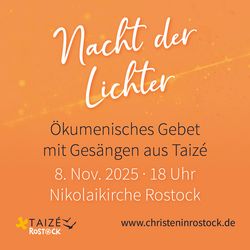 Am 8. November 2024 feiern wir um 18:00 in der Nikolaikirche eine Nacht der Lichter, ein ökumenisches Gebet mit Gesängen aus Taizé.