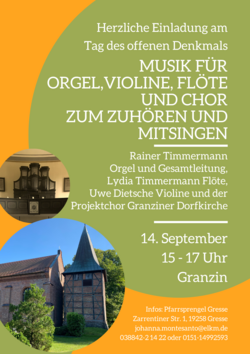 Musik im Offenen Denkmal Granziner Dorfkirche zum Zuhören und Mitsingen