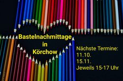 VeranstaltungBastelnachmittag 15.11.2025 · 15:00 Uhr · 17:00 Uhr Gemeindehaus KörchowTheodor-Kliefoth-Straße 919243 Wittenburg Im Kalender speichern (.ics) Route berechnen zurück zur Übersicht der Veranstaltungen