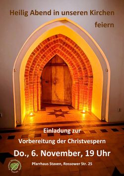 Wer dazu beitragen möchte, dass wir wieder in möglichst vielen unserer 11 schönen Dorfkirchen Christvespern feiern können, ist herzlich zum Vorbereitungstreffen eingeladen.