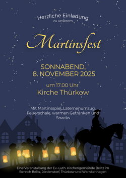 VeranstaltungSt. Martin in Thürkow mit Martinsspiel, Laternenumzug und Feuerschale 08.11.2025 · 17:00 Uhr · 18:00 Uhr Kirche ThürkowKirchsteig 17168 Todendorf Im Kalender speichern (.ics) Route berechnen zurück zur Übersicht der Veranstaltungen