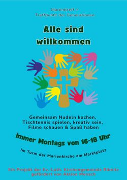 Der Marientreff in Ribnitz lädt alle Generationen herzlich ein. Kleine und große Menschen finden immer ein abwechslungsreiches Angebot. Verschiedene Räumlichkeiten bieten Platz für alle und jeden.
