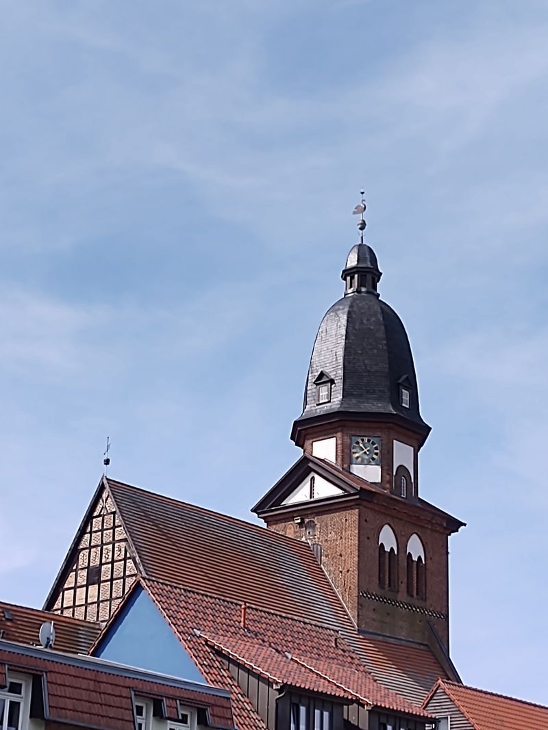 Die St. Marienkirche, Namensgeber unserer St. Mariengemeinde, befindet sich im Zentrum der Stadt Waren und ist mit ihrer Turmspitze eines der bekanntesten Wahrzeichen an der Müritz. Die Windfahne auf der Spitze in Form eines Schwans (Sinnbild für Martin Luther) diente als Anregung für das Logo der Stadt.