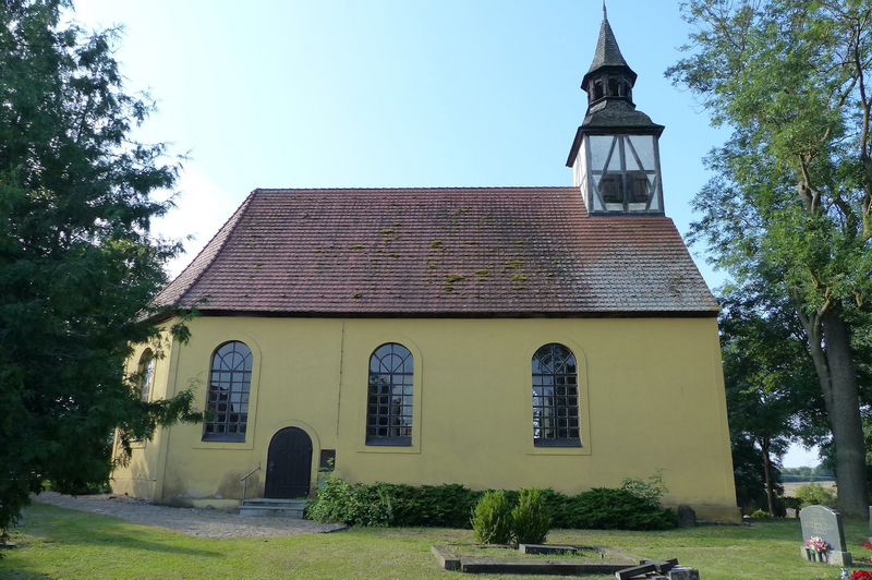 Die Kirche ist ein verputzter Backsteinbau aus dem Jahr 1757. Sie ist einschiffig mit dreiseitigem Ostschluss.