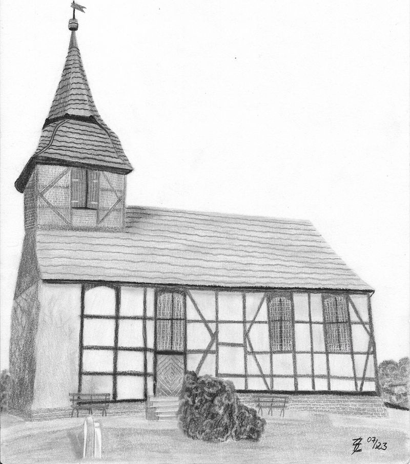 In der Bau-Fachliteratur von 1902 wird unsere jetzige Dorfkirche nüchtern und knapp beschrieben als: