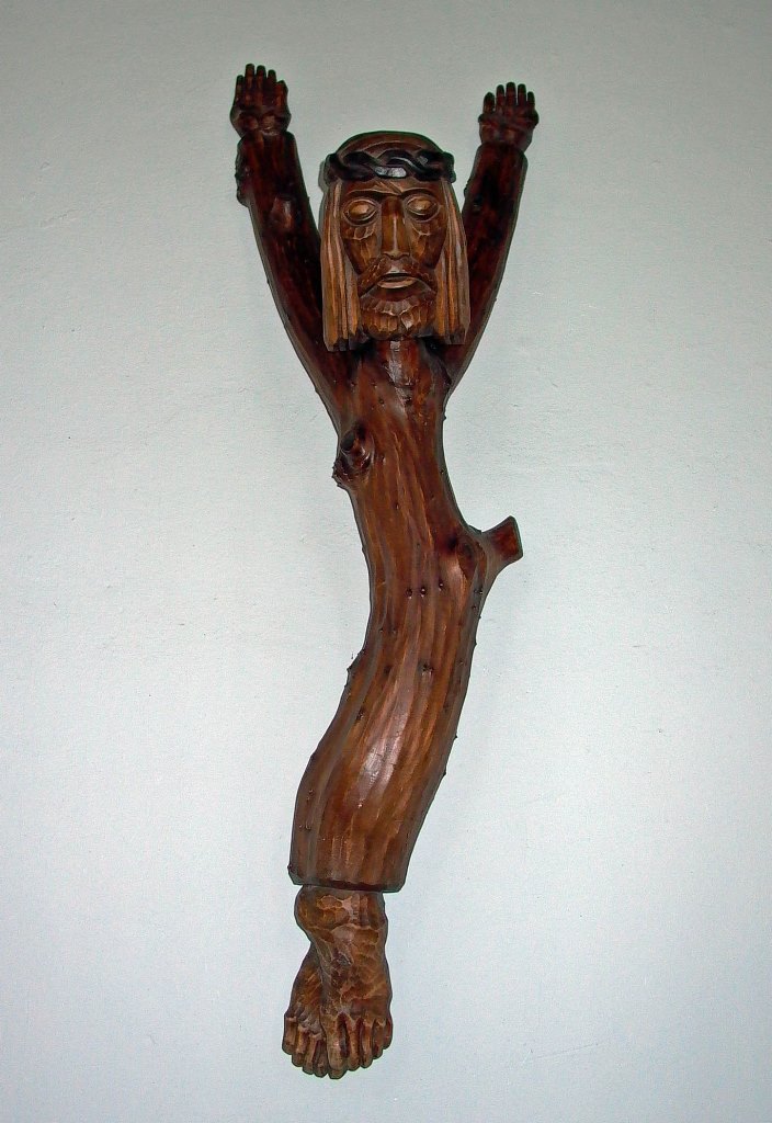 Ein neues Kreuz, der jetzigen Innengestaltung der Kirche angepasst, wurde über dem Altar angebracht und an der Südwand des Kirchenschiffes ist ein, von einem uns unbekannten Künstler gefertigtes, modernes Kruzifix zu sehen.