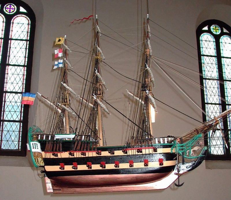 Im Innern der schlichten Kirche kann man das Votivschiff „Vergatte von Dierhagen 1799“ besichtigen. Es wird berichtet, dass sich um 1811 hiesige Seeleute im nahen Wald versteckt hielten, um der Zwangsrekrutierung durch die Franzosen zu entgehen. Als Dank für die Hilfe der Dorfbewohner stifteten die Seeleute das Schiffsmodell. Im Jahr 2005 ist die „Vergatte von Dierhagen 1799“ von dem Stader Ingenieur Gerhard Frankenstein ehrenamtlich restauriert worden, der auch schon mehrere Kirchenschiffe der Wustrower Kirche restauriert hatte.