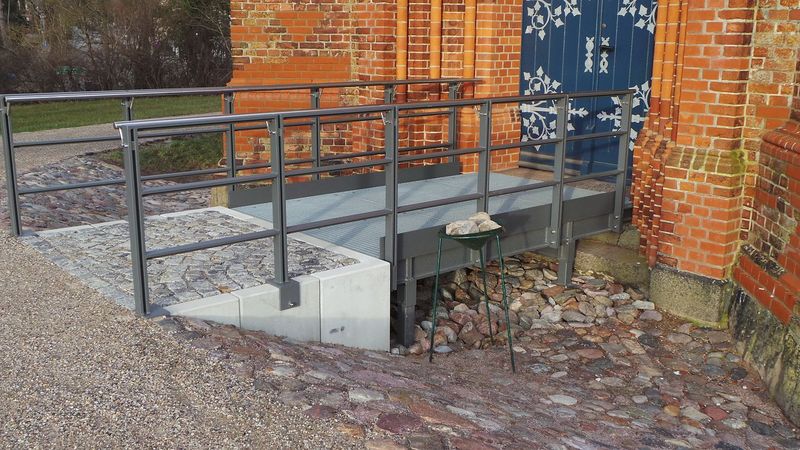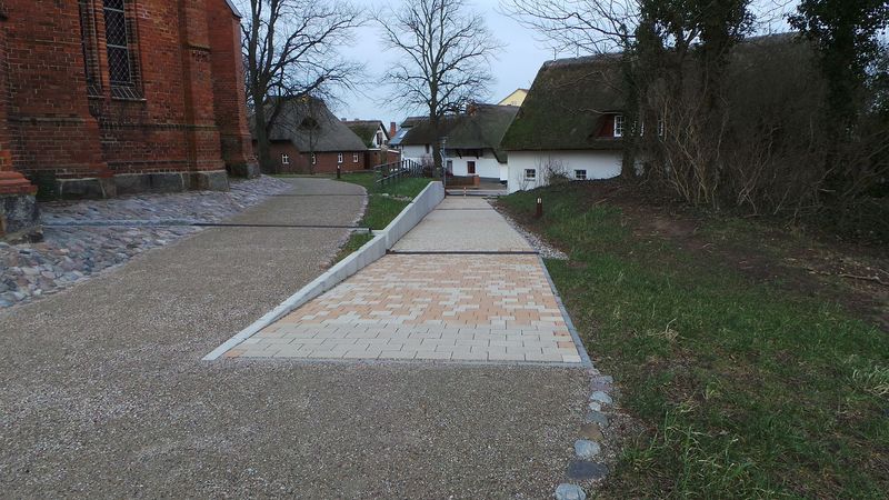 Die Wege zur und rund um die Wustrower Kirche wurden 2016 saniert und neu gestaltet. In diesem Zuge wurde ein rollstuhlgerechter Eingang über das Westportal in die Kirche geschaffen.