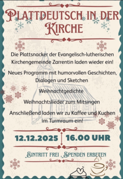 Die Plattsnacker der Evangelisch-lutherischen Kirchengemeinde Zarrentin laden wieder ein!