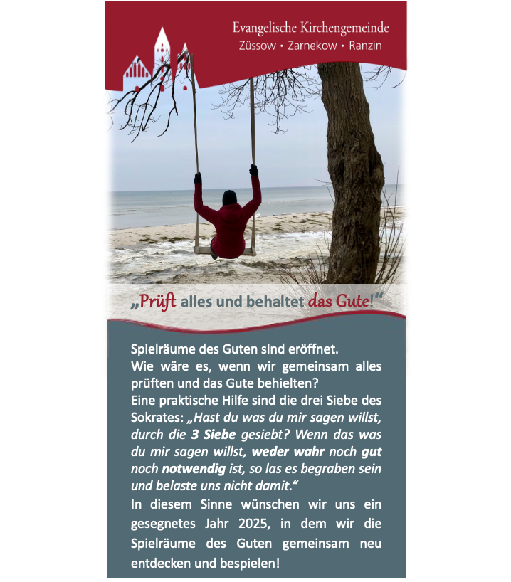 Zum Pfarramt Züssow-Ranzin gehören die Orte: